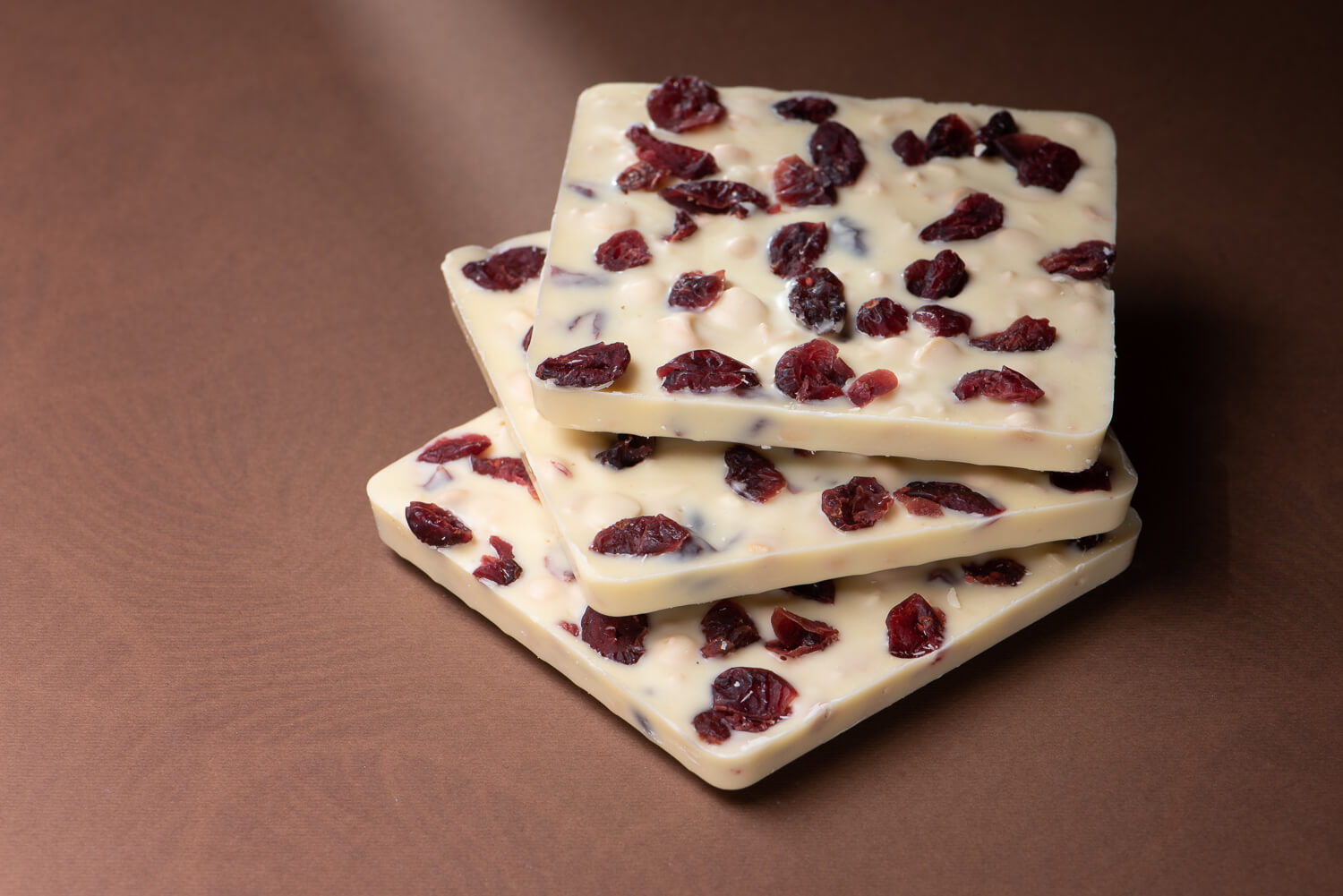 Biała czekolada z dodatkiem kruchych biszkoptów i słodko-kwaśnych owoców kandyzowanej żurawiny.