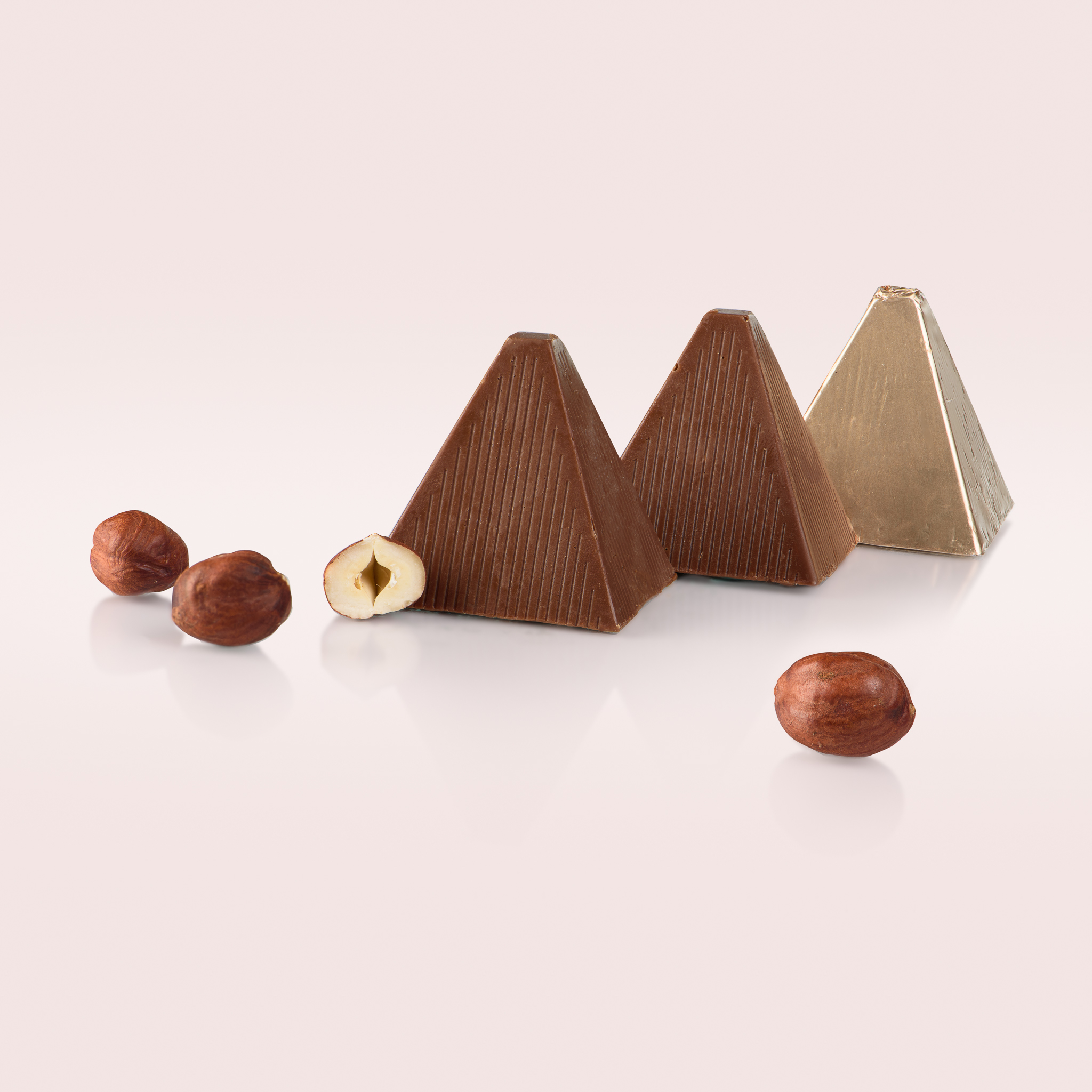 Siedem wyjątkowych pralin. Każda z nich to zatopiony w mlecznej czekoladzie aksamitny krem orzechowy z chrupiącymi orzechem laskowym.